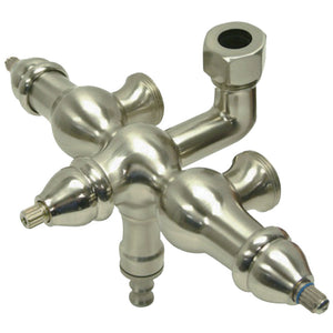 This faucet body is designed for clawfoot tubs can be used wall mounted or deck mounted with the addition of the appropriate elbows and fittings, includes integral diverter and downspout, manufactured out of solid brass and equipped with a ceramic cartridge this faucet will give you many years of trouble-free performance.