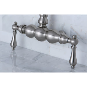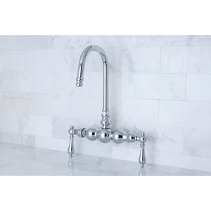 This gooseneck faucet body is designed for clawfoot tubs can be used wall mounted or deck mounted with the addition of the appropriate elbows and fittings, includes integral diverter and outlet for shower riser, manufactured out of solid brass and equipped with a ceramic cartridge this faucet will give you many years of trouble-free performance.