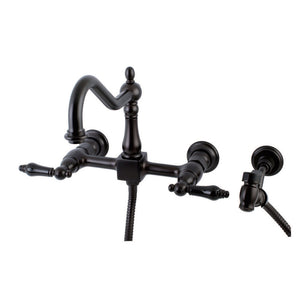 Kingston Brass KS1242PKLBS Duchess Wall Mount Bridge Kitchen Faucet with Brass Spray