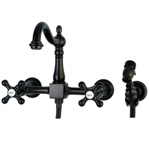 Kingston Brass KS1265AXBS Heritage Wall Mount Bridge Kitchen Faucet with Brass Sprayer
