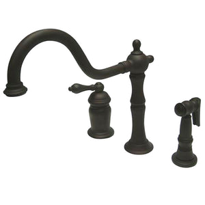 A lavish spark of traditionally stylized glamour is brought to your kitchen ensemble with this beautiful faucet. Able to fit a variety of sink set-ups, widespread kitchen faucets can be utilized in several multi-hole configurations. These are ideal for larger kitchens, as they are more spread apart, and with the included side-sprayer feature a 3-hole installation. The oil rubbed bronze finish will also provide a long lasting and warm touch to your kitchen ensemble. Allow the brass construction to provide a sturdy and reliant fixture.