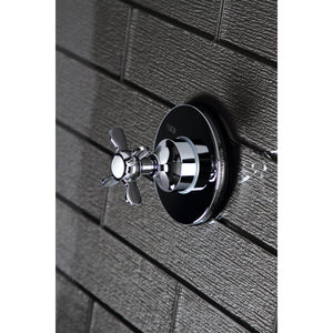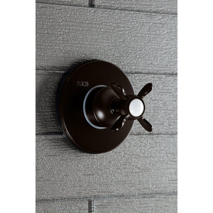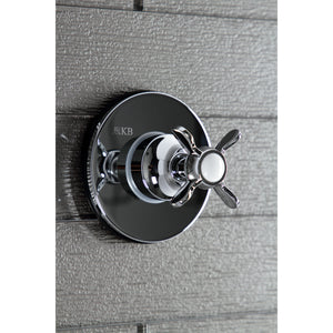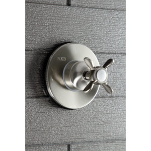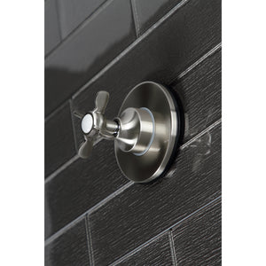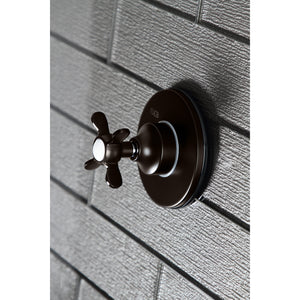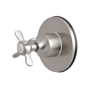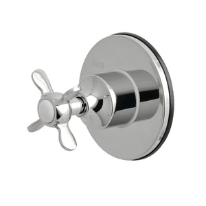 This cross handle, diverter valve and face plate help direct water to divert into three different ways, usually for the shower head, hand shower or tub spout. Each component is crafted with solid brass for durable long-term use. The diverter valve features one inlet to three outlets, to move water to its desired destination. Easy to install, the diverter is usable with hot and cold water and complies with other traditional designs.