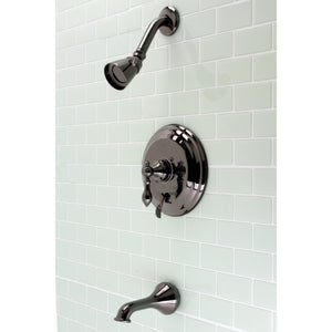 Add refinement and charm to your bathroom with this tub and shower faucet's simple design. Complete with an easy-to-turn lever handle, an optimum bathing experience awaits. Enjoy the sturdy brass construction and premium black stainless steel finish for a fixture that will last for years to come. A pressure balanced valve is included for safety and protection against accidental burns.