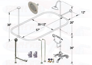 Chrome Clawfoot Tub Faucet Package Faucet, Oval Shower Enclosure W/Head, Drain & Supply Kit