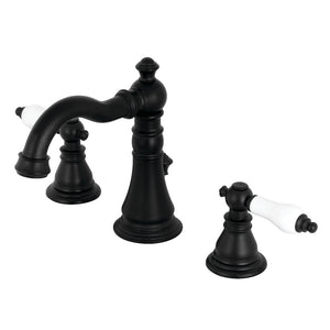 Orchestrated with the flow of the ever-present porcelain lever handles, this faucet prevails a whimsical tune of design to accompany its traditional detailing. Ideal for more spacious bathrooms, widespread faucets are more spread apart and feature a 3-hole installation. The American Patriot 8 in. widespread bathroom faucet with pop-up drain and its featured sturdy brass construction and premium black stainless finish are guaranteed to glamorize your home's traditional ensemble for years to come. Add a hint of vintage styling to your household with this faucet. A matching finish drain is also included.