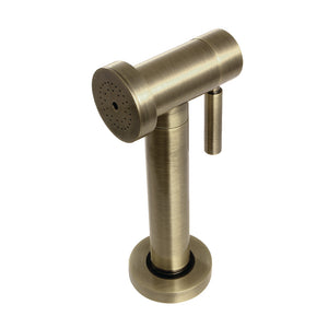 The Kingston Brass Gourmet Scape kitchen brass side spray provides an added convenience for washing hard to reach areas, larger dishes, vegetables, and more. Available in multiple finishes, coordinate this accessory to match your kitchen faucet. Includes 60-inch black hose.