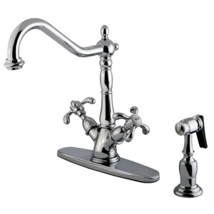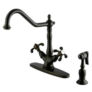 Kingston Brass KS1238TXBS French Country Mono Deck Mount Kitchen Faucet with Brass Sprayer