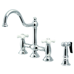 Kingston Brass KS3798PXBS Restoration Bridge Kitchen Faucet with Brass Sprayer