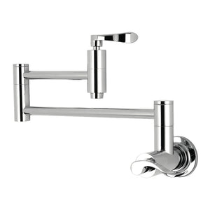 Crafted from streamline design and fluidity in detail, this faucet allows homeowners to relish in effervescence. As an excellent tool to quickly, easily, and stylishly fill pots, eliminate strain on your joints. Pot-fillers are useful gadgets placed directly above the stove, providing easily accessible water. The foldable swing arms of this pot filler allow for extendable reach of up to 20" of length and provide long-lasting function due to their sturdy brass construction. Additionally, the dual handles prevent unwanted water spillage while enhancing the modern theme.
