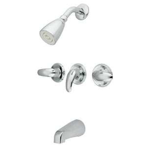 A twist on classic design is taken with this tub and shower faucet's curved features. Complete with easy-to-turn lever handles, an optimum bathing experience awaits. Enjoy the sturdy brass construction and premium polished chrome finish for a fixture that will last for years to come. Internal valve hardware is included for your use.