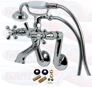 Polished Chrome Vintage Wall Mount Clawfoot Tub Filler With Hand Shower