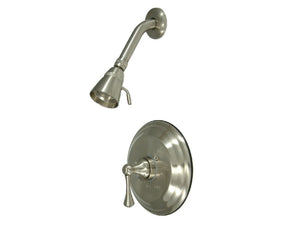 This shower faucet's modern features create a bold and edgy design in your bathroom. Complete with an easy-to-turn lever handle, an optimum bathing experience awaits. Enjoy the sturdy brass construction and premium brushed nickel finish for a fixture that will last for years to come. A pressure balanced valve is included for safety and protection against accidental burns.